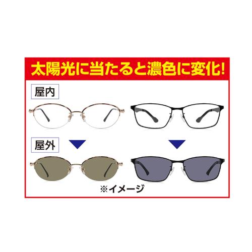 掛けたり外したりがなくなる! 近くも遠くも、屋内・屋外もこれ一本で! 遠くの景色も手元のスマホも眼鏡をずらさずスムーズに見ることができます! ●カラー(フレーム):スクエア型=ブラック/オーバル型=ゴールド系 ●サイズ(約):スクエア型=幅13.7×高さ3.6×つるの長さ14.5cm/オーバル型=幅14×高さ3.7×つるの長さ14.5cm ●重量(約):スクエア型=24g/オーバル型=22g ●材質:レンズ=ポリカーボネート/フレーム(スクエア型)=ステンレス、PVC、シリコーン/フレーム(オーバル型)=ステンレス、白銅、シリコーン、ガラス4石 ●可視光線透過率(約):スクエア型=遮光時15%~露光時83%/オーバル型=遮光時16%~露光時74% ●医療機器製造販売届出番号:34B2X10003890010 ●中国製 ※夜間や暗い場所では使用しないでください。