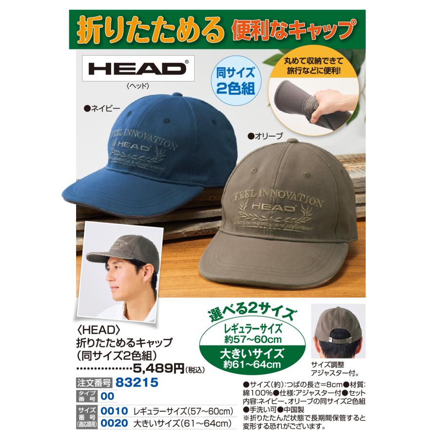 〈HEAD〉折りたためるキャップ(同サイズ2色組)