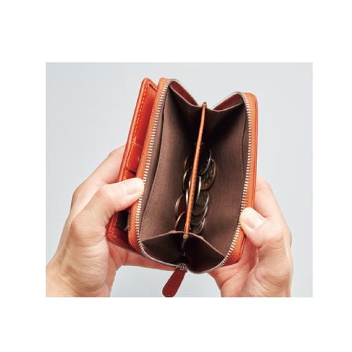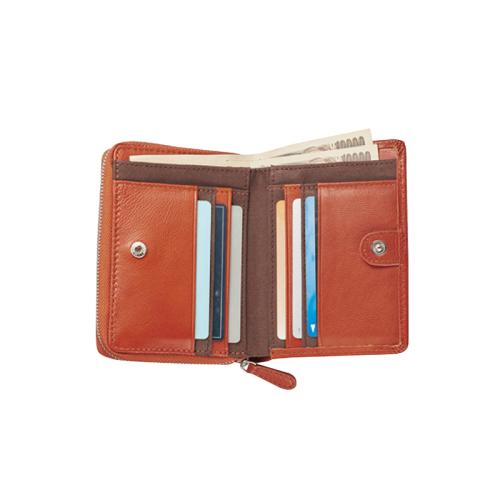 男の財布は、しなやかに、美しく、そして丈夫に。 しなやかで美しい質感と、型崩れしにくい耐久性を併せ持つゴートレザー(成山羊革)を使用。天然のシボやシワが味わいを深めます。ファスナー開閉のやや大きめ二つ折りデザインで、ゆとりのある収納力を実現しました。 ●サイズ(外寸・約):幅13cm×高さ9.5×厚さ3cm ●重量(約):123g ●材質:表地=山羊革/裏地=山羊革、綿 ●仕様:札入れ×1、カード入れ×6、二層式ファスナー小銭入れ×1、オープンポケット×6 ●バングラデシュ製