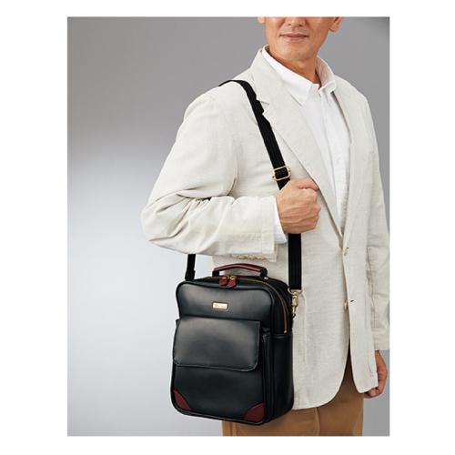鞄づくり100年以上の歴史が薫る「旅する、上質」。旅行に、街歩きに。高級感と使いやすさを備えた、収納豊富なショルダーバッグ。 鞄の街「豊岡」の職人が丁寧に仕上げたバッグ。上質な合成皮革を主素材に、持ち手やコーナー部分には牛革を使用し、持ちやすさと高級感をプラス。コンパクトながら使い勝手の良いショルダーバッグです。 ●カラー:ブラック ●サイズ(外寸・約):幅23×高さ28×厚さ8cm/ショルダーベルト長さ=65~115cm(着脱可)/持ち手高さ=3.5cm ●重量(約):550g ●材質:本体=合成皮革/持ち手・装飾=牛革 ●仕様:ダブルファスナーメインコンパートメント(内部にオープンポケット×1、メッシュオープンポケット×1)/前面=マグネット式フラップポケット(内部にオープンポケット×2)/背面=面ファスナー留めポケット×1 ●日本製