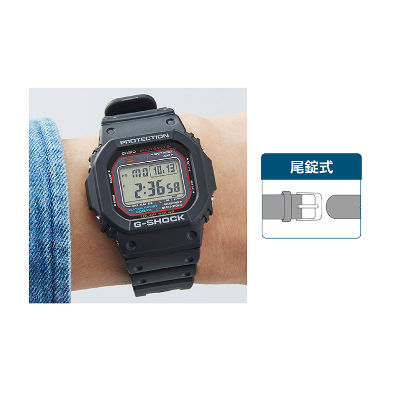 タフに、正確に、休むことなく働き続けるG。 正確さとタフさを追求した、G-SHOCKの遺伝子を色濃く継承するベーシックモデル。タフソーラー&電波受信機能を搭載。耐衝撃構造の20気圧防水が、さまざまな状況下で無類の強さを発揮します。●カラー:ブラック ●サイズ(約):縦4.6×横4.3×厚さ1.2cm/適応手首周り=14.5~20.5cm ●重量(約):52g ●材質:ケース・バンド=ウレタン樹脂/風防=無機ガラス ●仕様:中国またはタイ製クオーツムーブメント、標準電波受信機能、平均月差±15秒(電波非受信時)、タフソーラー(ソーラー充電システム)、世界6局受信、世界48都市(29タイムゾーン)ワールドタイム機能、サマータイム設定機能、ストップウオッチ機能、タイマー機能、アラーム機能、20気圧防水、ELバックライト点灯、パワーセービング機能、耐衝撃構造 ●留め具:尾錠式 ●中国またはタイ製 ※一部電波の入りにくい場所(地下、ビル内)があります。