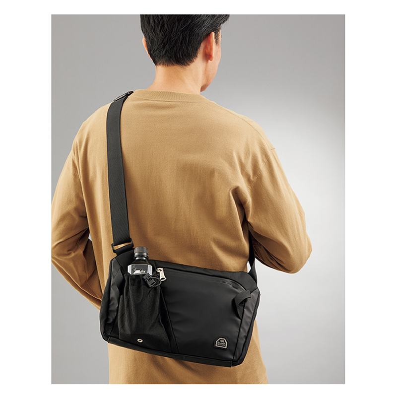 装いに合わせて、使いたい大人のキレイめカジュアル。 年齢や服装を問わず使いやすいシンプルで上品なデザイン。軽量設計で持ち運びやすく、荷物もしっかり収まる使い勝手の良さが魅力です。 ●サイズ(外寸・約):幅27×高さ22×厚さ7cm/ショルダーベルト長さ=72~136cm(着脱不可) ●重量(約):280g ●材質:本体=ポリエステル、合成皮革/ショルダーベルト=ポリエステル ●仕様:ダブルファスナーメインコンパートメント(内部にメッシュファスナーポケット×1)/前面=ファスナーポケット×1(内部に着脱可能キーホルダー×1)、ペットボトル(約500ml)収納用ポケット×1 ●中国製