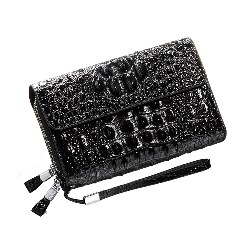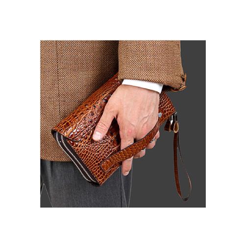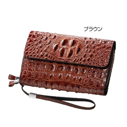 リアルで精巧な作りが醸す、大人の風格。 1匹のワニに1つしかない、頭部のクラウン模様まで型押しで再現したこだわりのデザイン。ガバッと大きく開く開口部や見た目以上の高い収納力も魅力。 ●サイズ(外寸・約):幅22×高さ14×厚さ4.5cm/ストラップ長さ=24cm(着脱可) ●重量(約):400g ●材質:表地=ポリウレタン(クロコ型押し)/中材=ポリウレタン、ナイロン ●仕様:マグネットホック留めかぶせ開閉ファスナーメインコンパートメント(内部にオープンポケット×2、カード入れ×12)、ファスナーサブコンパートメント(オープンポケット×3、ファスナーポケット×1) ●中国製 ※商品の性格上、一点一点風合い等が異なる場合があります。