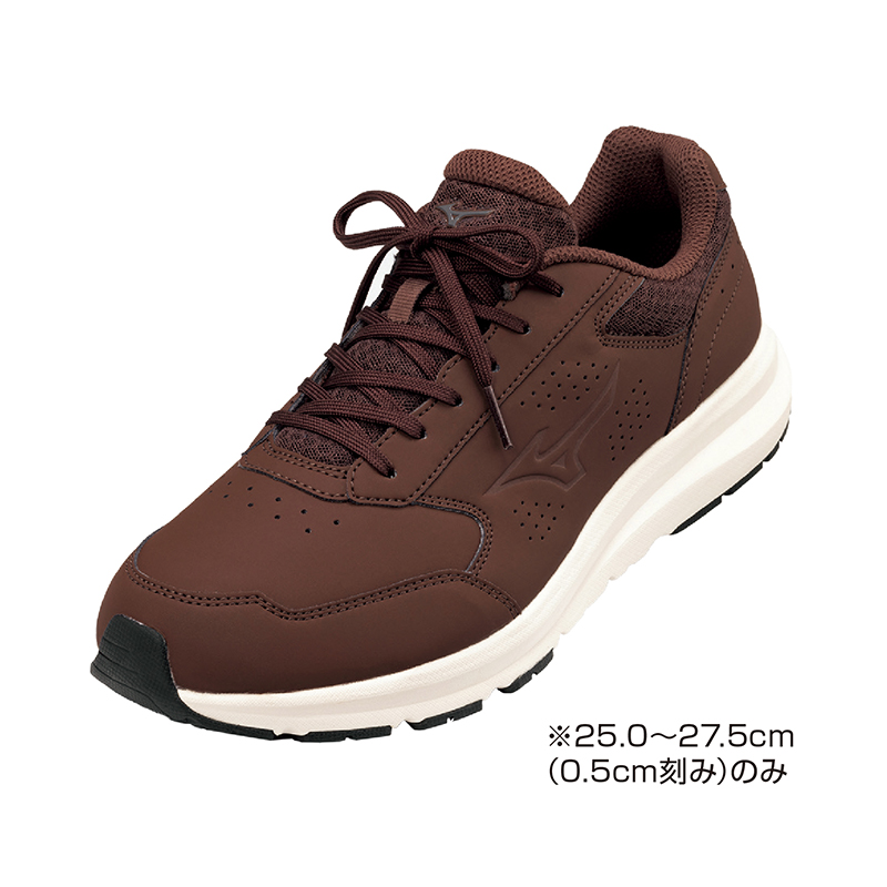 毎日の“歩く”を足元からしっかりサポート。 ラクな履き心地。ミズノの技術を搭載した歩くのが楽しくなるウォーキングシューズ。人工皮革なのでカジュアルからフォーマルまで幅広く使えます。 ●ワイズ:4E相当 ●重量(約):275g(27.0cm・ 片足) ●材質:アッパー=人工皮革、合成繊維/ソール=合成底 ●ベトナム製 ※ブラウンのみ24.0・24.5cmはございません。