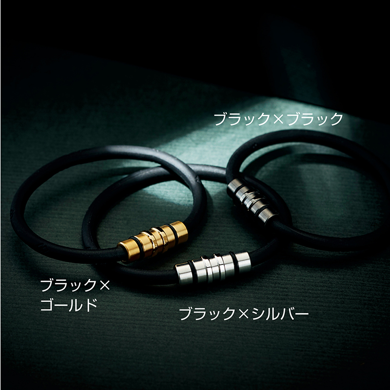 腕にアクセント。スタイリッシュな磁気健康ギアです。 160mT(ミリテスラ)の希土類永久磁石をN極S極交互に配置。血行および筋肉のコリを改善します。軽くしなやかにフィットし、スポーツをはじめさまざまなシーンで、おしゃれなファッションアイテムとして活用できます。 ●サイズ(約):トップジョイント長さ= 25mm /ループ部長さ=16cm(S)、17.5cm(M)、19cm(L) /ループ部直径=5mm ●重量(約):13.5g(M) ●材質:トップジョイント=高耐食ステンレス鋼(SUS316L)/ループ部=シリコーン ●仕様:希土類永久磁石(160mT)4個をN極S極交互配列、ウォータープルーフ ●医療機器承認番号:228AGBZX00115000 ●日本製 ※ペースメーカーまたは脳脊髄液短絡術用圧可変式シャントなどの医用電気機器を使用している方は使用しないでください。 ※医師の治療を受けている方は医師と相談の上でご使用ください。 ※ご使用後の返品・交換はお受けできません。