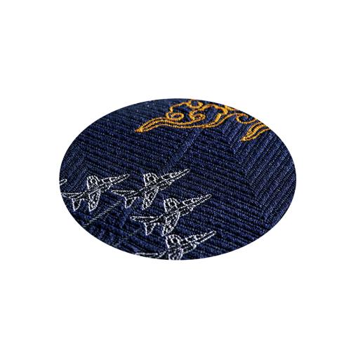 優雅な金刺繍で表現した「祥雲」と、6機の「ブルーインパルス」。