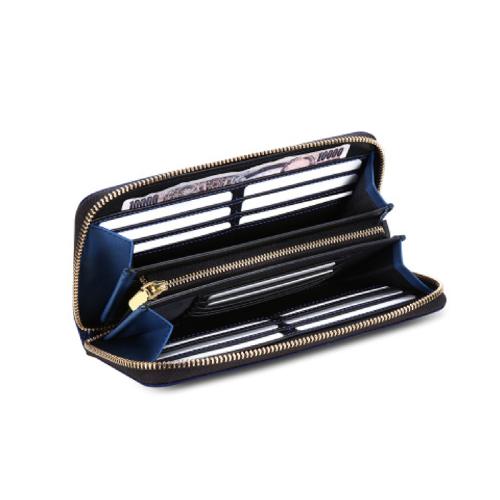 ブルーインパルスの雄姿を西陣織に。伝統の技が息づく、気高き逸品。 吉兆の雲「祥雲」と富士山を背景に、華麗に飛行するブルーインパルス。大空に翔ぶその姿を、美しい色糸で織り上げた西陣織の長財布です。収納力など機能性にもしっかりこだわった航空自衛隊70周年記念モデル。 ●カラー:ネイビー ●サイズ(外寸・約):幅20.5×高さ10×厚さ3cm ●重量(約):200g ●材質:ポリエステル、レーヨン、ポリウレタン ●仕様:ラウンドファスナー開閉、札入れ×2、ファスナー小銭入れ×1、カード入れ×17、オープンポケット×2 ●中国製(生地=日本製) ※商品の性格上、一点一点風合い等が異なる場合があります。
