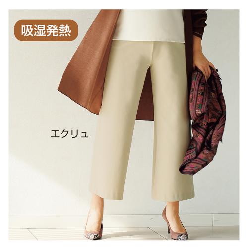 颯爽として品の良い、きれいめ大人パンツ。 極細繊維を高密度に編み上げた秋冬素材を使用、適度なハリがある心地よいフィット感を実現しました。これからの季節に嬉しい吸湿発熱機能も備えています。 ●素材:アクリル40%、ナイロン39%、レーヨン17%、ポリウレタン4% ●仕様:両脇ポケット、ウエスト総ゴム ●手洗い可 ●日本製 ※裾直し後の返品・交換はお受けできません。
