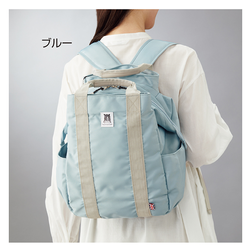 たっぷり入ってお洒落に背負える。自立する使いやすさも魅力です。 口金入りでガバッと開くメイン収納の前後にも収納スペースを備える三層構造の大容量モデル。丈夫なナイロン生地を使用した軽量設計で、日常使いから旅行など幅広いシーンで活躍します。 ●サイズ(外寸・約)幅30×高さ37×厚さ14cm ●重量(約):590g ●材質:本体=ナイロン/ショルダーベルト=ポリプロピレン/口金=スチール ●仕様:ダブルファスナーメインコンパートメント(内部にオープンポケット×2、ファスナーポケット×1)/前側=マグネットホック留めポケット×1/後ろ側=ファスナーポケット×1/側面=オープンポケット×2/背面=ファスナーポケット×1 ●中国製