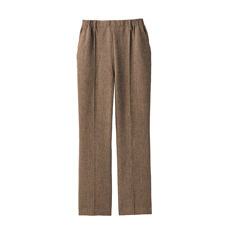 ツイード調素材を使用。無理なくはけて、センターピンタックできちんと感もあります。