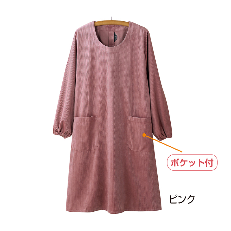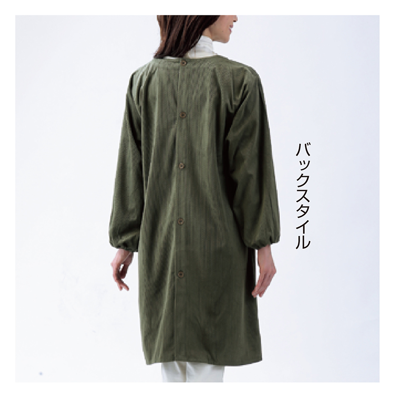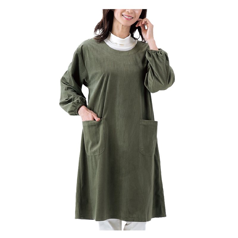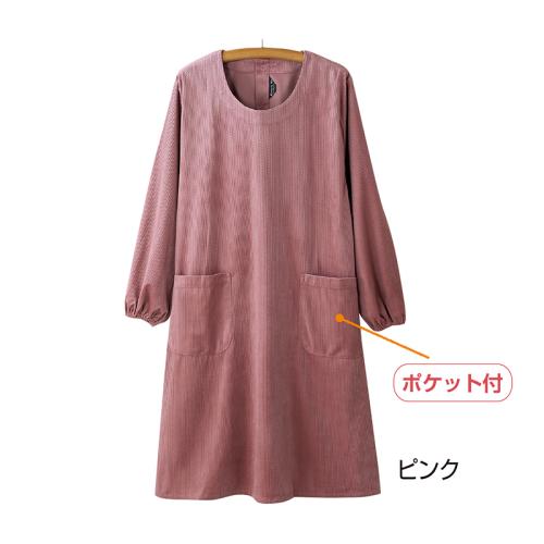 シンプルで品よく暖かく。秋口から活躍します。 ぬくもり感のあるコール天で仕上げたチュニック感覚の割烹着。サッと被って、お尻まですっぽり。保湿性と吸湿性に優れ、見た目も暖かです。 ●適応サイズ:M~L相当 ●素材:ポリエステル100% ●仕様:両脇ポケット、後ろボタン全開×5 ●洗濯機可(ネット使用) ●中国製