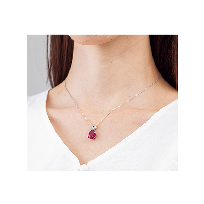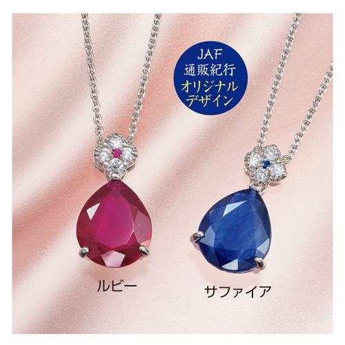 紅と碧、魅惑の競演。 ルビーとサファイア。それぞれ天然石5カラットを贅沢にあしらい、ゴージャスに仕上げました。 ●サイズ(約):トップ=縦19×横10×厚さ7mm/チェーン長さ=45cm(アジャスター5cm含む) ●重量(約):3g ●材質:ルビー本体=ルビー(5ct・含浸処理)×1、ルビー(0.01ct)×1、キュービックジルコニア×4(計約0.1ct)/サファイア本体=サファイア(5ct・含浸処理)×1、サファイア(0.01ct)×1、キュービックジルコニア×4(計約0.1ct)/チェーン=真鍮(ロジウム メッキ) ●留め具:引輪式 ●日本製(ルビー・サファイア=インド産/キュービックジルコニア=中国製) ※商品の性格上、一点一点風合い等が異なります。 ※お届けまでに約2週間かかる場合があります。