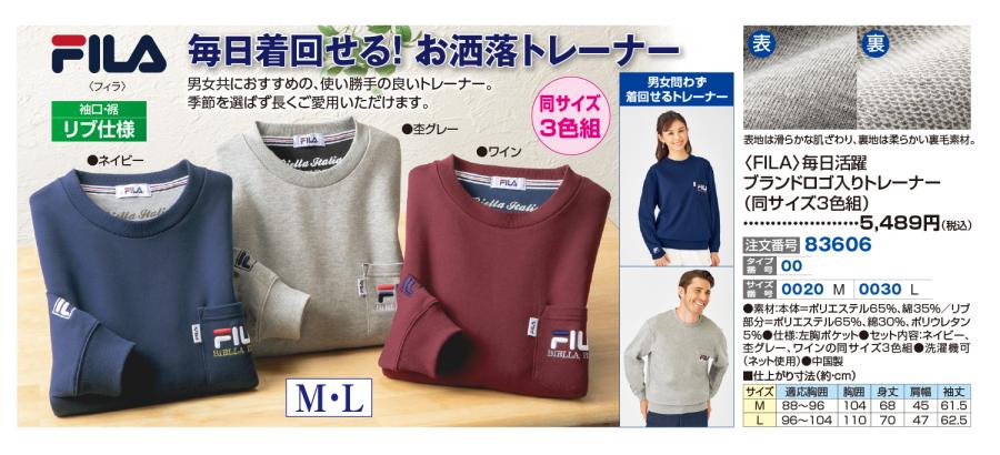 〈FILA〉毎日活躍ブランドロゴ入りトレーナー(同サイズ3色組)