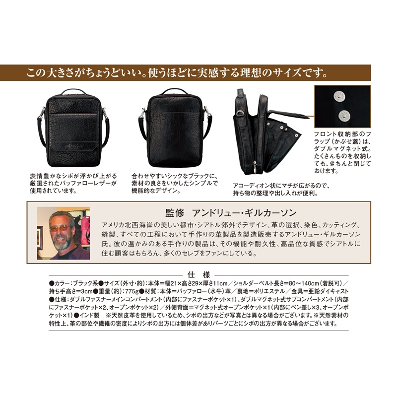 <アンドリュー・ギルカーソン>バッファローレザーのコンプリート・ショルダーバッグ