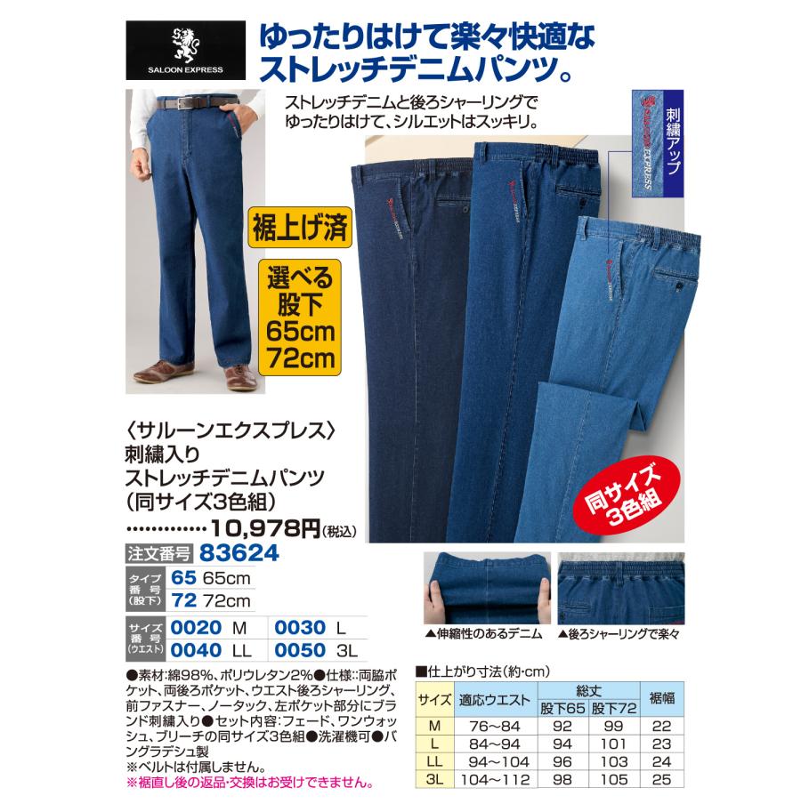 〈サルーン・エクスプレス〉刺しゅう入りストレッチデニムパンツ(同サイズ3色組)