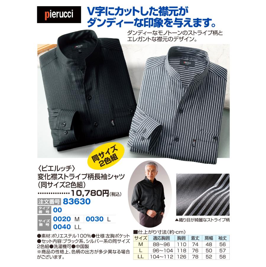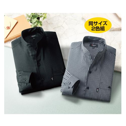 〈ピエルッチ〉変化襟ストライプ柄長袖シャツ(同サイズ2色組)
