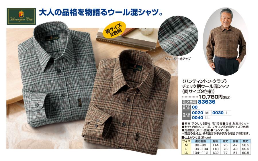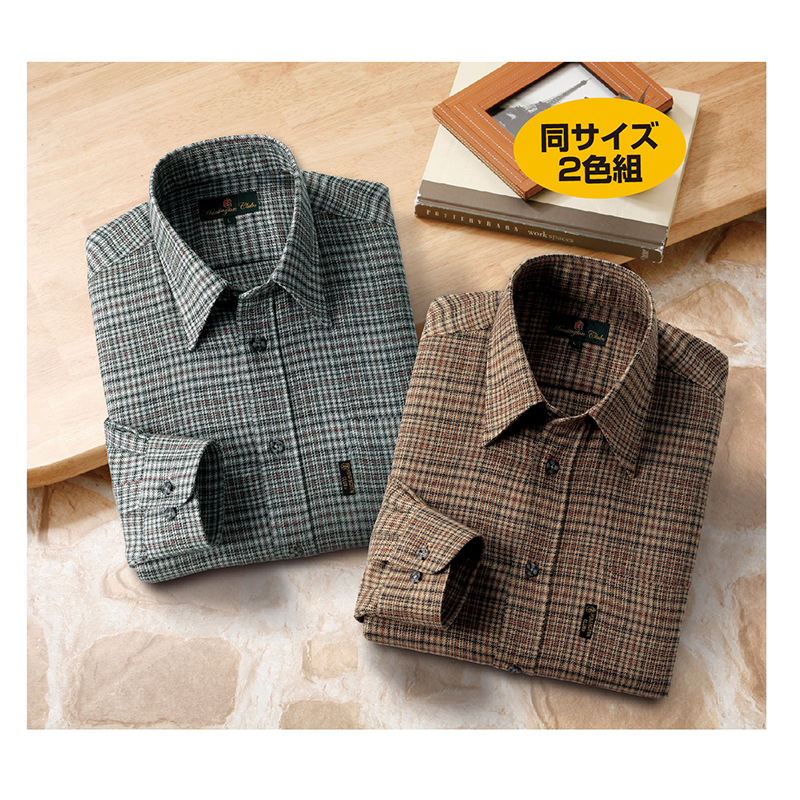 〈ハンティントン・クラブ〉チェック柄ウール混シャツ(同サイズ2色組)