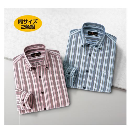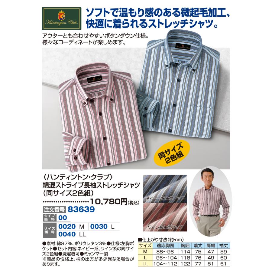 〈ハンティントン・クラブ〉綿混ストライプ長袖ストレッチシャツ(同サイズ2色組)