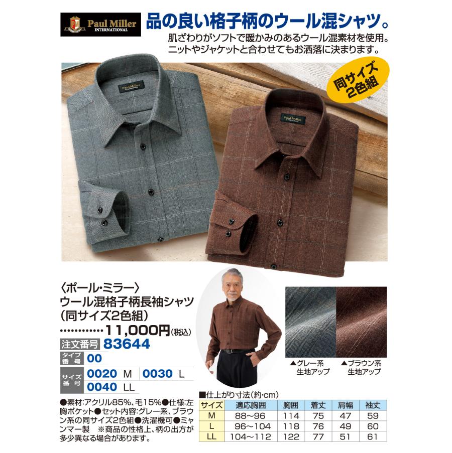 〈ポール・ミラー〉ウール混格子柄長袖シャツ(同サイズ2色組)