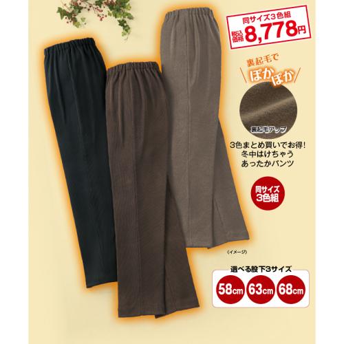 3. 充実サイズの裏起毛フリーパンツ(同サイズ3色組)