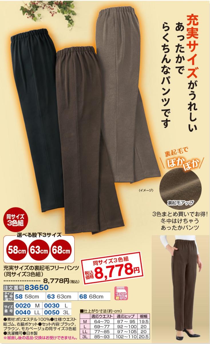 充実サイズの裏起毛フリーパンツ(同サイズ3色組)