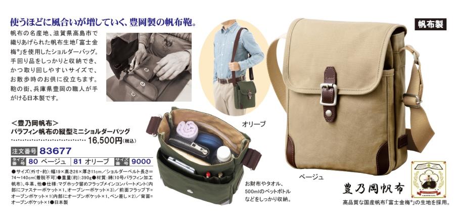 3. 〈豊乃岡帆布〉パラフィン帆布の縦型ミニショルダーバッグ