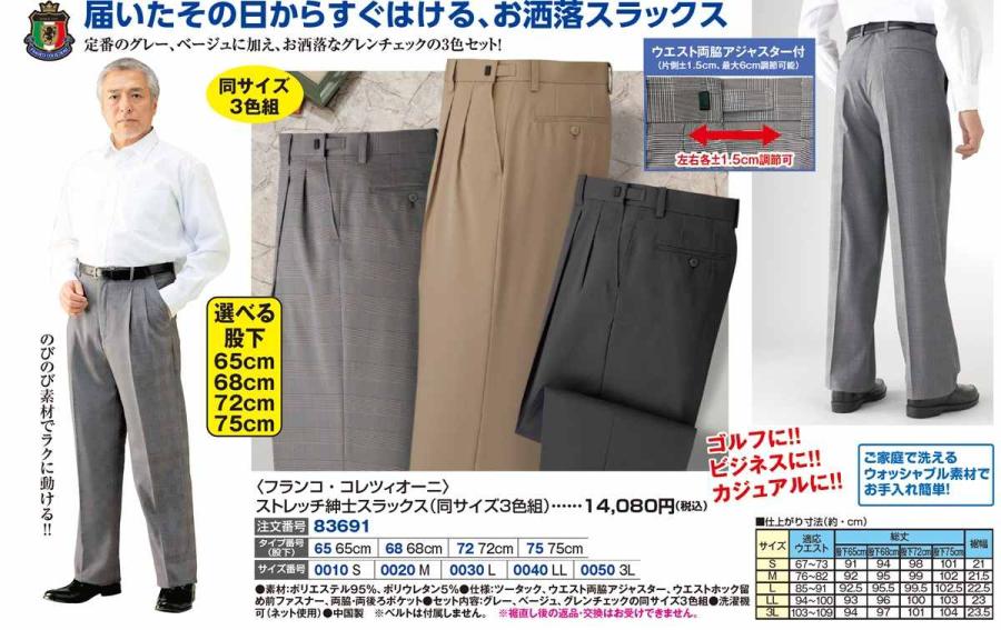3. 〈フランコ・コレツィオーニ〉ストレッチ紳士スラックス(同サイズ3色組)