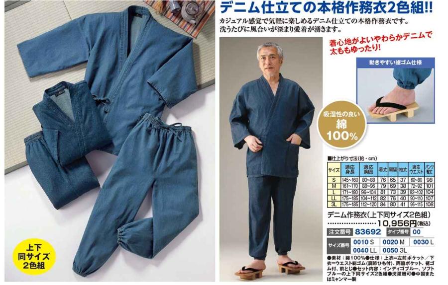 3. デニム作務衣(上下同サイズ2色組)