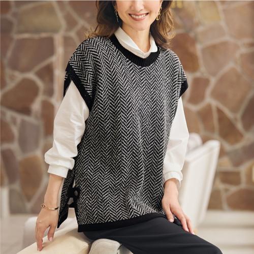 ヘリンボーンニットベスト