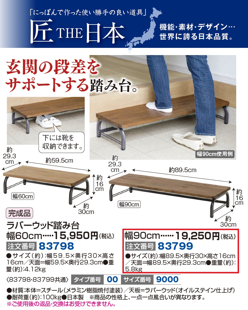 3. ラバーウッド踏み台 幅90cm