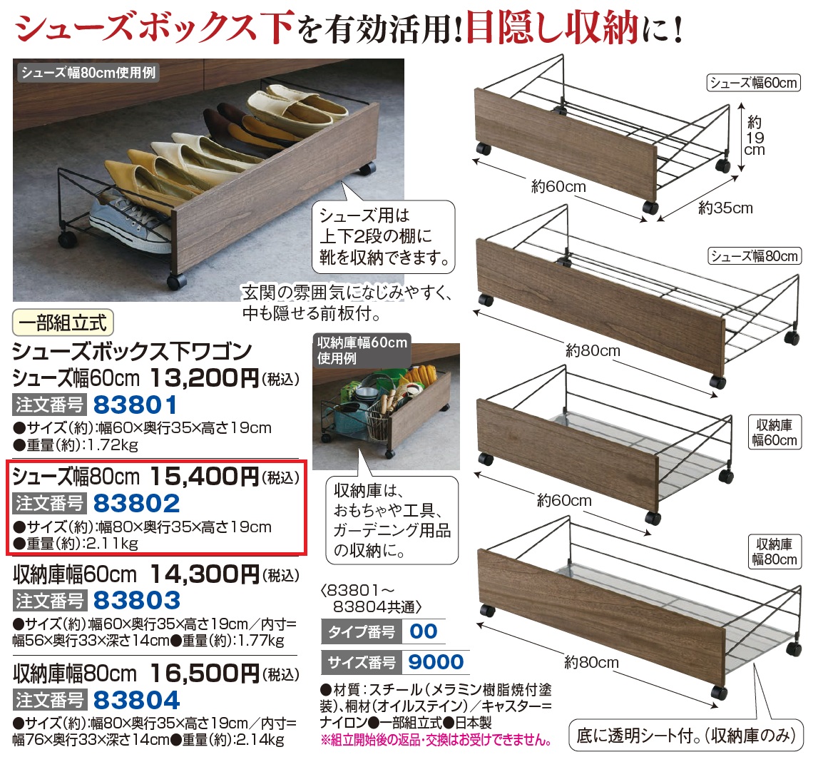 3. シューズボックス下ワゴン シューズ幅80cm