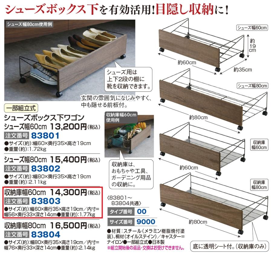 3. シューズボックス下ワゴン 収納庫幅60cm