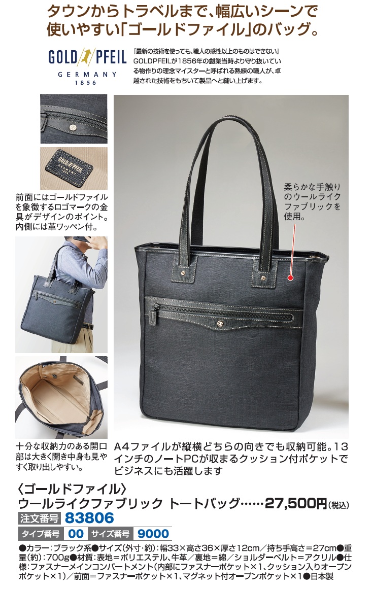 3. 〈ゴールドファイル〉ウールライクファブリックトートバッグ