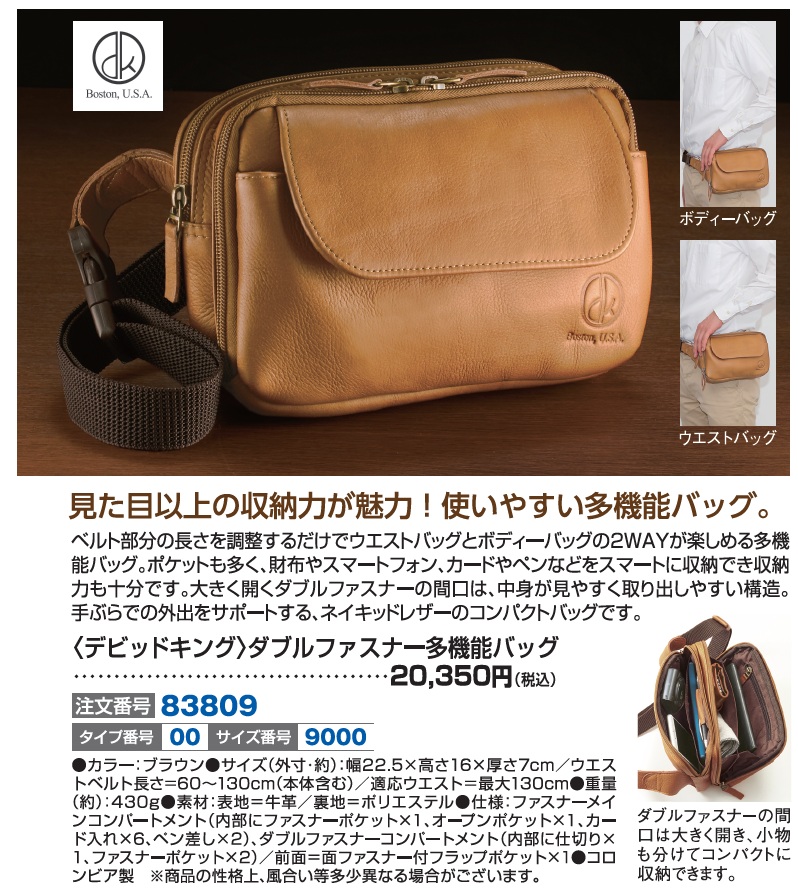 3. 〈デビッドキング〉ダブルファスナー多機能バッグ