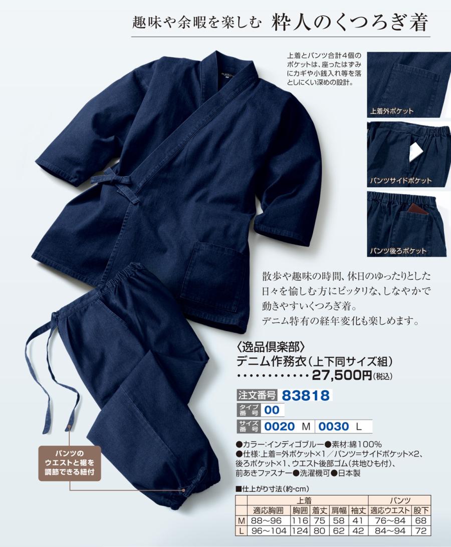 〈逸品倶楽部〉デニム作務衣(上下同サイズ組)