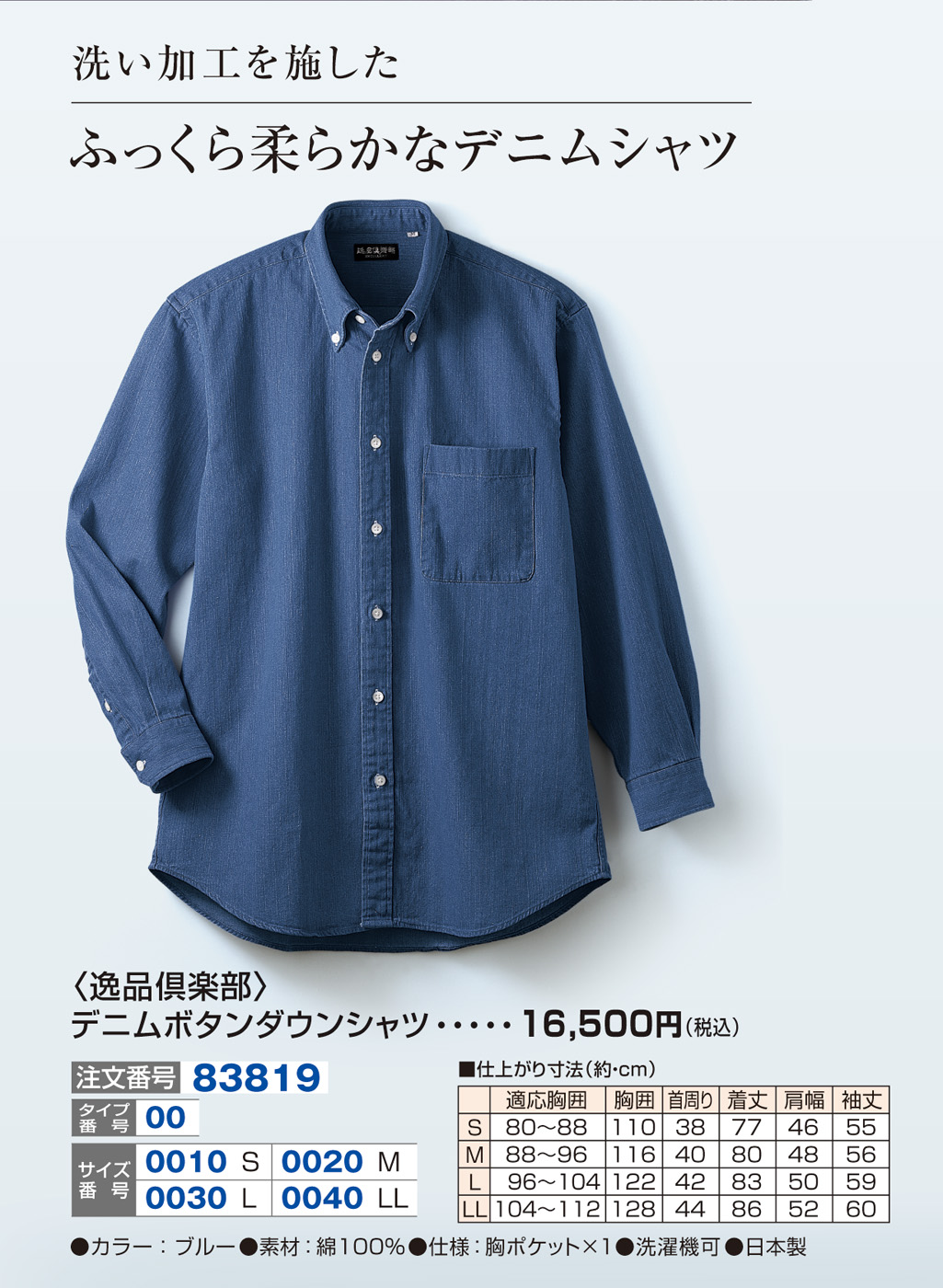 〈逸品倶楽部〉デニムボタンダウンシャツ