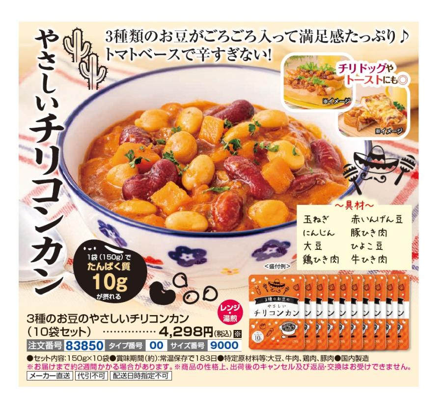 3. 3種のお豆のやさしいチリコンカン(10袋セット)