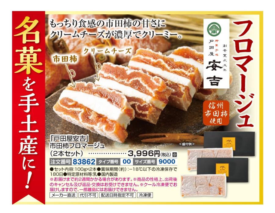 「戸田屋安吉」市田柿フロマージュ(2本セット)