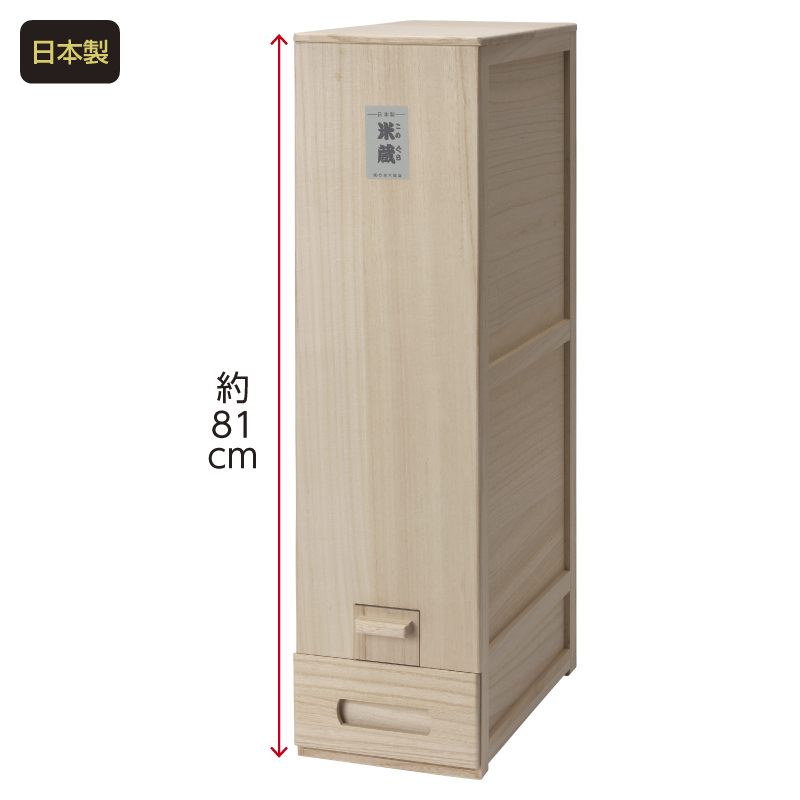 天然桐と匠の力でお米を守る。 プラスチック部品や金属はいっさい不使用。桐材のもつ天然の防虫、調湿・調温効果で、虫害や高温多湿から美味しく守ります。●サイズ(約):幅23×奥行43×高さ81cm ●重量(約):4kg ●材質:天然木(桐) ●日本製 ※商品の性格上、一点一点風合い等が異なります。 ※お届けまで約3週間かかる場合があります。 ※ご使用後の返品・交換はお受けできません。