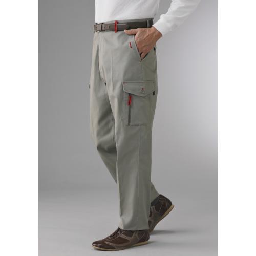アクセントカラーの赤がオシャレ。小粋なカーゴパンツのお得な2色組。 すっきりとしたデザインにカラーステッチがお洒落な印象。収納も豊富で機能的。コーディネイトの主役になれるカーゴパンツです。 ●素材:綿95%、ポリウレタン5% ●仕様:両脇ポケット、両後ろボタン付フラップポケット、右サイドボタン付フラップポケット(ペン差し×1)、左サイドダブルポケット(ボタン付フラップ+ファスナー)、ウエストホック留め前ファスナー、ウエスト後ろゴム、ノータック ●セット内容:ベージュ、チャコールグレーの同サイズ2色組 ●洗濯機可(ネット使用) ●中国またはミャンマー製 ※ベルトは付属しません。