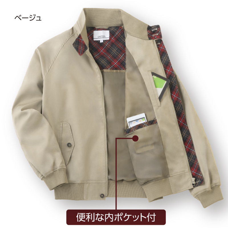 時代を超えた正統派のスイングトップ。 流行に左右されないデザインにチェック柄の裏地でアクセントを付けました。6ポケットで、街歩きからレジャーまで幅広く活躍します。 ●素材:ポリエステル100%/柄部分=綿100%/リブ部分=ポリエステル98%、ポリウレタン2% ●仕様:表側=両脇フラップ付ポケット/内側=両脇・両胸ポケット ●ドライクリーニング可 ●中国製