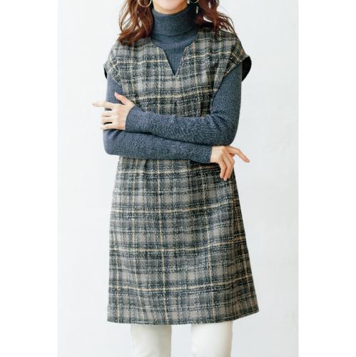 すっぽりかぶればオシャレが完成。 肩からストンと落ちるシルエットは体型もカバー。インナーを合わせやすいキーネックデザインです。 ●カラー:グレー系 ●素材:ポリエステル77%、綿12%、レーヨン8%、アクリル2%、ナイロン 1% ●手洗い可 ●中国製 ※商品の性格上、柄の出方が多少異なる場合があります。 ※インナー、アクセサリーは付属しません。