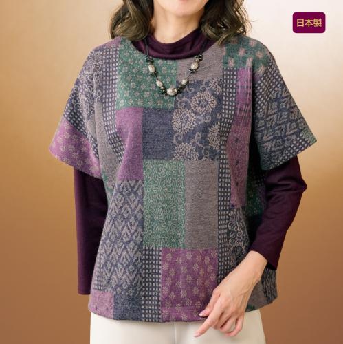 色と柄の共演で装いを華やかに。 保温性に優れた尾州インレーニットで仕立てたプルオーバーです。 ●カラー:パープル系 ●素材:ポリエステル77%、毛16%、ナイロン7% ●手洗い可 ●日本製 ※商品の性格上、柄の出方が多少異なる場合がございます。 ※インナー、アクセサリーは付属しません。
