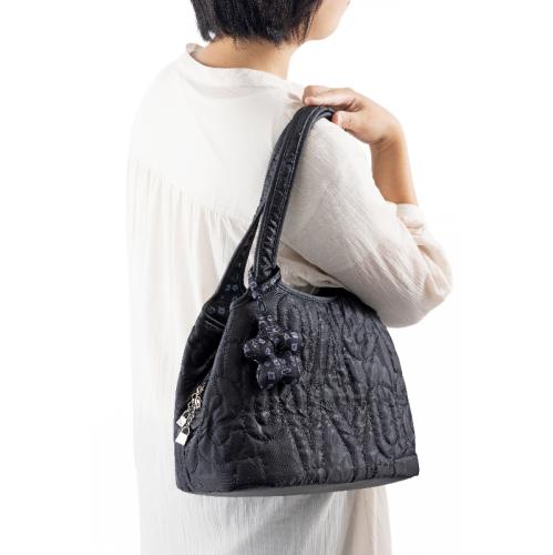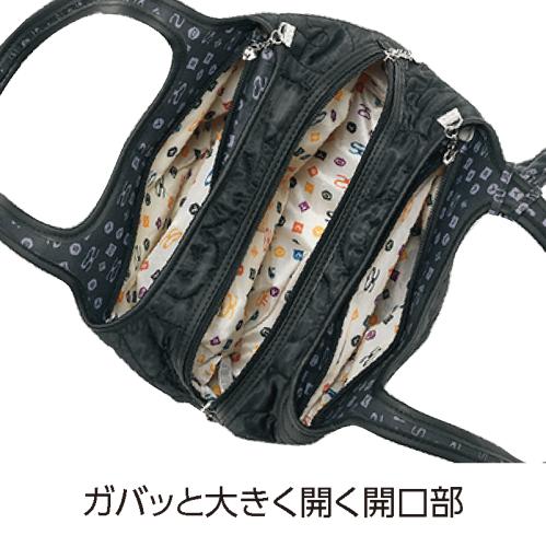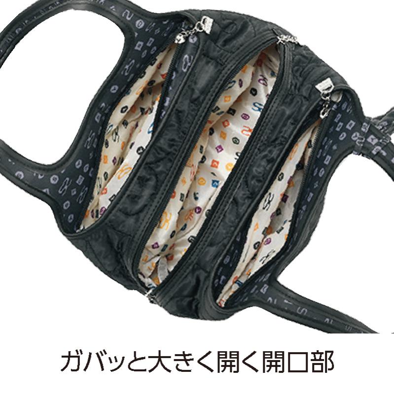 大人かわいい重宝バッグ。 シックでお洒落。中身が整理しやすい3層式です。 ●カラー:ブラック ●サイズ(約):幅33×高さ23×厚さ16cm/持ち手高さ=24cm ●重量(約):360g ●材質:ポリエステル ●仕様:ダブルファスナーメインコンパートメント(内部にオープンポケット×2、ファスナーポケット×1)、前後にファスナー式あおりポケット×各1、チャーム付(着脱可) ●中国製 ※商品の性格上、柄の出方が多少異なる場合があります。