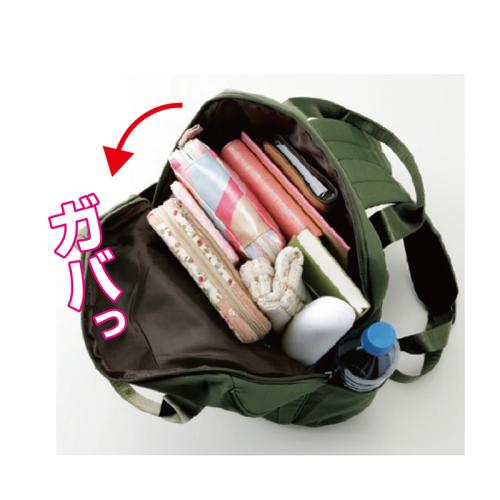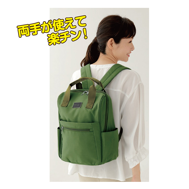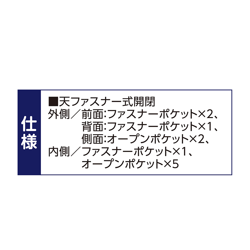大きく開いて見やすい! 11個のポケットで収納便利。 ●サイズ(外寸・約):幅32×高さ37×最大厚さ16cm/持ち手高さ=8cm ●重量(約):420g ●材質:表側=ポリエステル/内側=ポリエステル ●中国製