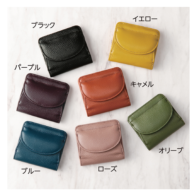 コンパクトなのにお財布としての機能が充実。 ちょっとした外出やサブのお財布としても。上質な牛革を使用し、鞄の街・豊岡の職人が作りました。 ●サイズ(外寸・約):幅10×高さ9×厚さ2.5cm ●重量(約):80g ●材質:表地=牛革/裏地=合成皮革、レーヨン ●仕様:ホック式開閉、札入れ×1、カード入れ×6、オープンポケット×2、前面ホック付ボックス型小銭入れ×1 ●日本製