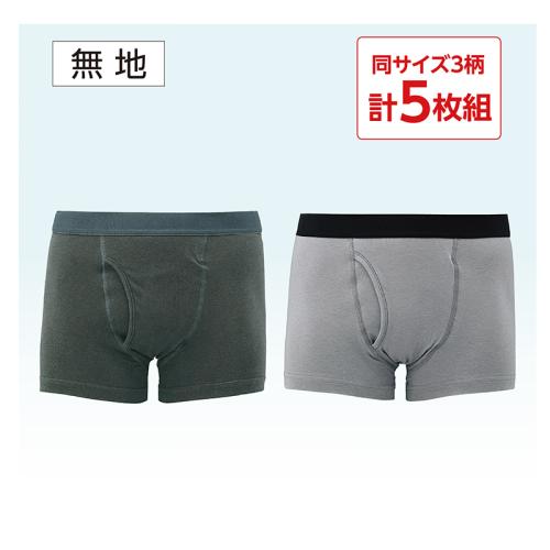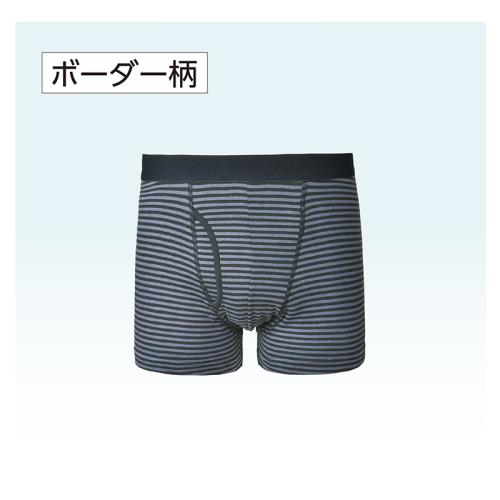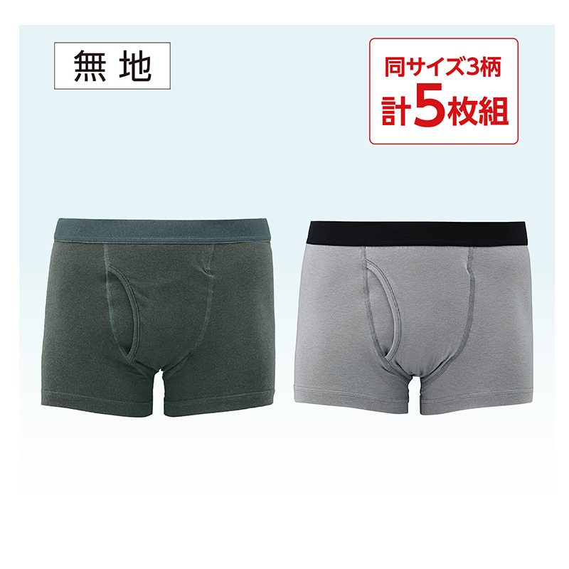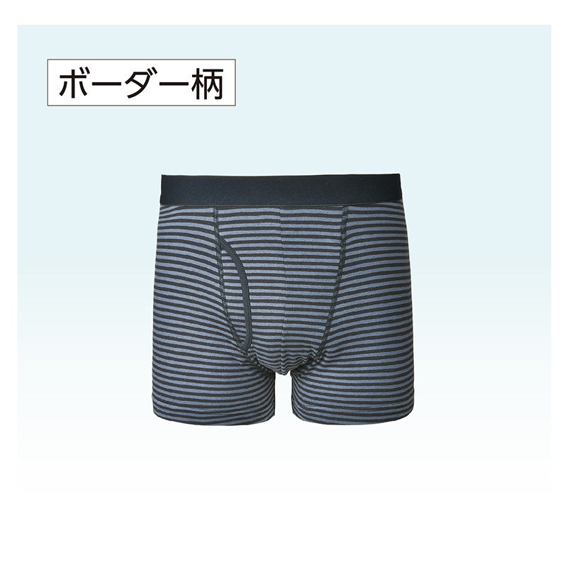 肌あたりが柔らかくトイレ後の悩みを軽減。 本体に綿混素材を採用。腰ゴムもソフトなゆったり設計。抗菌防臭加工でニオイにも対応したボクサーブリーフです。 ●セット内容:①無地(ブラック×1、グレー×1)、②ジーニング(ブラック×1、ブルー×1)、③ボーダー柄の同サイズ3柄計5枚組 ●素材:本体=①③綿95%、ポリウレタン5%、②綿80%、ナイロン15%、ポリウレタン5%/腰ゴム部(①②③共通)=ナイロン55%、ポリエステル40%、ポリウレタン5%/裏マチ部(①②③共通)=レーヨン45%、綿40%、ポリウレタン15% ●仕様:前あき ●洗濯機可 ●①=ベトナム製/②=中国製/③=タイ製 ※衛生商品のため、開封後の返品・交換はお受けできません。