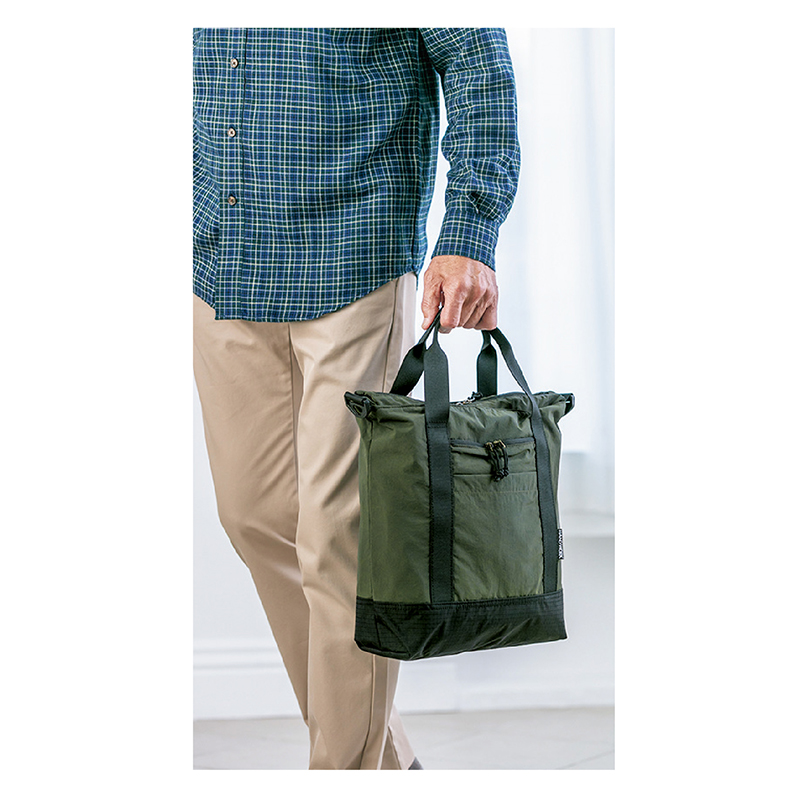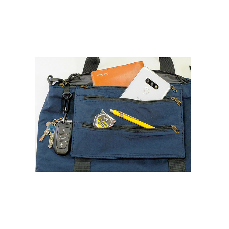 吊り下げポケットも便利な軽量ショルダーバッグ。 メインコンパートメントには、物が取り出しやすい吊り下げポケットに加え、A4ファイル対応オープンポケット、500mlサーモボトルが入るドリンクホルダー、キーリングと多彩な収納力。ショルダーベルトを外し、トートバッグとしても使えます。 ●サイズ(外寸・約):幅29×高さ33×厚さ10cm/ショルダーベルト長さ=70~110cm(着脱可)/持ち手高さ=11cm ●重量(約):365g ●材質:表地=リップストップナイロン(撥水加工)/裏地・ショルダーベルト=ポリエステル ●仕様:ダブルファスナーメインコンパートメント(内部にダブルファスナーポケット×1、ファスナーポケット×2、オープンポケット×1、キーフック×1、ボトル用ホルダー×1)/前面=ダブルファスナーポケット×1、オープンポケット×1/背面=オープンポケット×1 ●中国製
