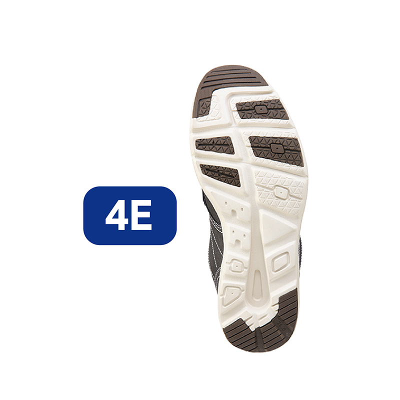 つま先ゆったり、ワイド4E設計。衝撃吸収素材でやさしい歩き心地。 つま先にゆとりをもたせた形状で、足指を圧迫せずにのびのび動かせます。さらに幅広4E設計で楽々。ふかふかウレタンクッションインソールと衝撃吸収素材で、歩行時の負荷を軽減します。 ●ワイズ:4E ●重量(約):270g(26.0cm・片足) ●材質:アッパー=合成皮革/ソール=EVA、ラバー ●中国製