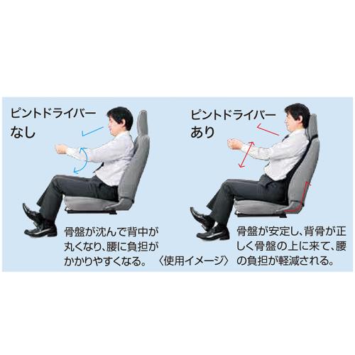 環境に優しい新素材E-CORE採用。p!nto Driverがより快適に進化。 再利用可能なエコ素材E-COREをクッション素材に採用。よりスムーズな体圧の分散を実現し、通気性や耐久性も向上。運転操作が楽にできるようサポートし、運転時の負担を軽減します。 ●カラー:ブラック ●サイズ(約):幅43×奥行46×高さ62cm ●重量(約):1130g ●材質:カバー=ポリエステル100%/中材=ポリエチレン100%(E-CORE) ●仕様:固定ベルト付(着脱不可)、座面裏前端部滑り止め付 ●カバー=洗濯機可/中材=手洗い可 ●日本製 ※本革シート、スポーツシート等のサイドが大きく盛り上がったシートには使用できません。